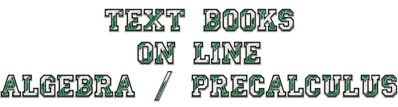| To order this book from lulu.com for $14.44, click here: College Algebra on Lulu | To order the Trig portion from lulu.com for $9.21, click here: Trigonometry on Lulu | ||